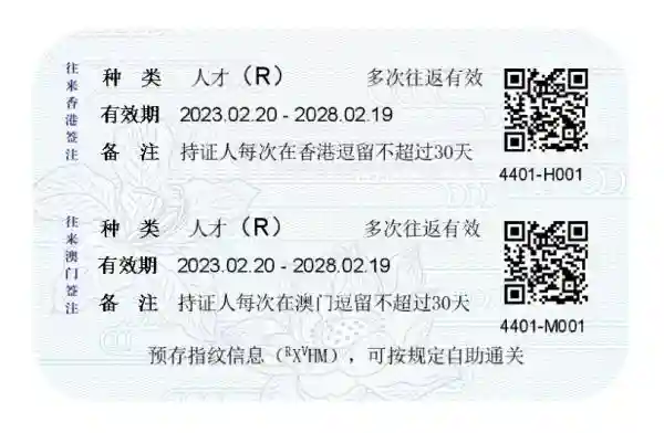 图为往来港澳人才签注式样图。
