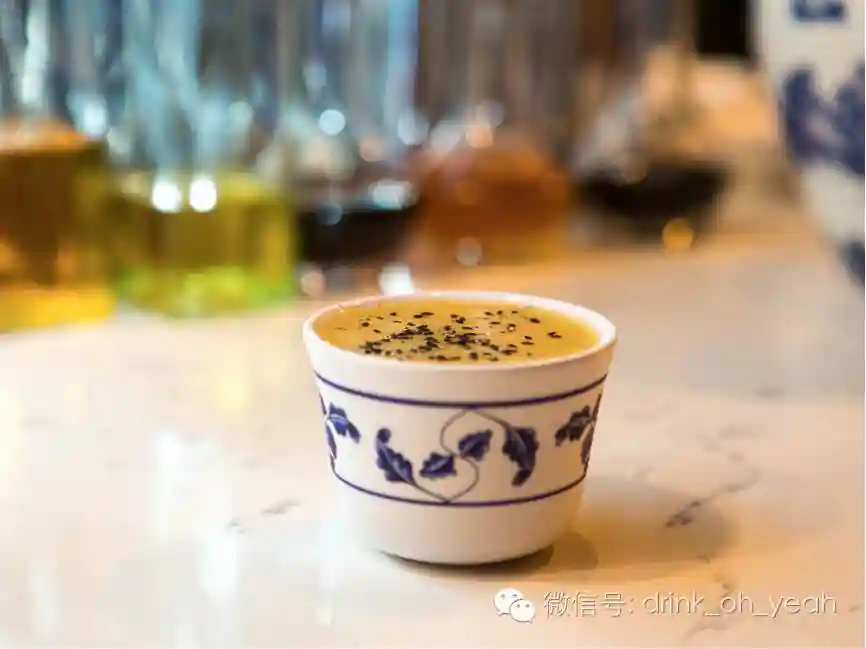 李的合伙人Salicetti请我品尝了一些他们发明的鸡尾酒,逐一喝过之后,只能说我个人并不是很喜欢,因为白酒作为基酒本身的味道太重了,但往好处看,又是因为配方上的巧妙搭配,加入了焦糖菠萝汁和山竹果汁,又在上面恰到好处的撒了一些芝麻,这样一来更好的带出了白酒的酱香,而果汁的清甜正好平衡了白酒的烧灼感,总的来说算是一款不错的鸡尾酒。
