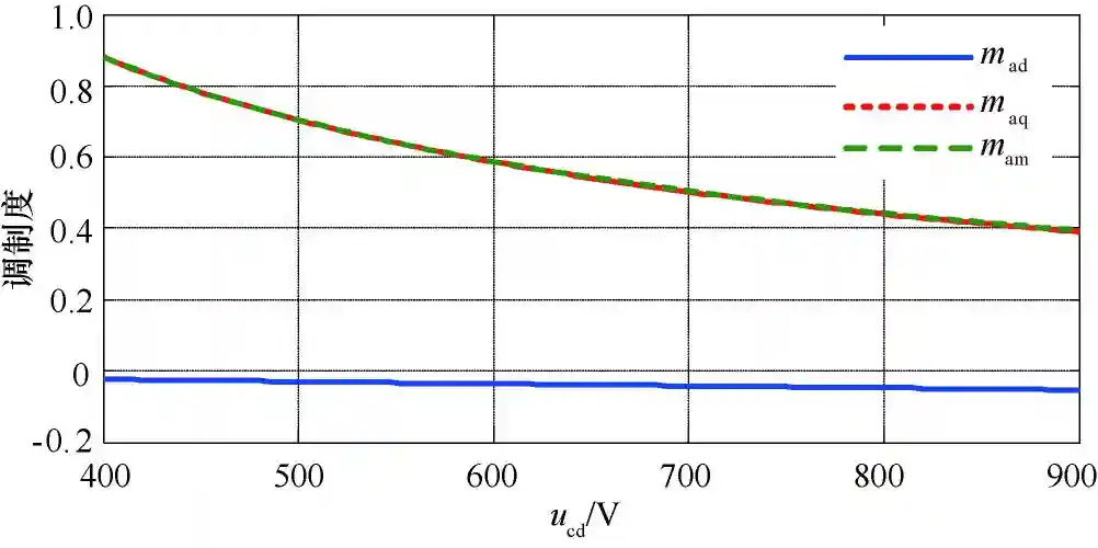 由式(7),当耦合点电压确定后,CSC调制度的d轴分量在额定值附近波动,额定值的表达式为
