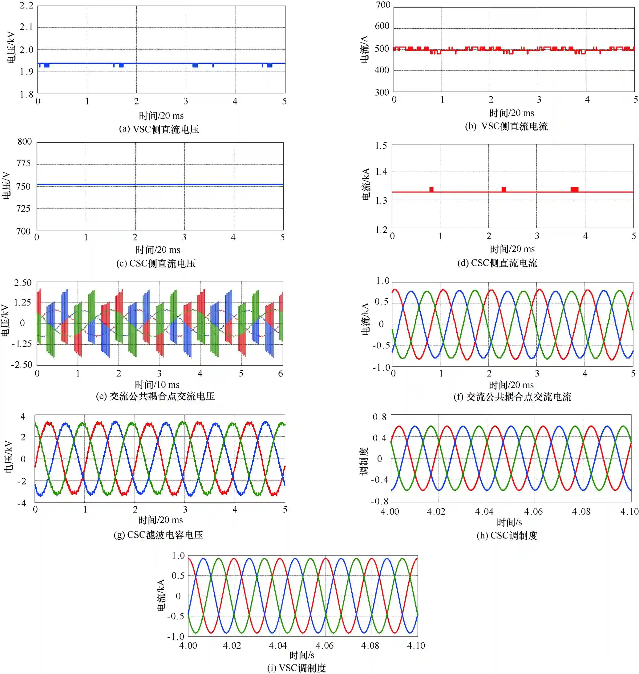 通过上述分析,可以合理选择耦合点的电压幅值,使CSC与VSC不出现过调制且CSC桥臂功率半导体器件电压应力不超过最大设计电压值。