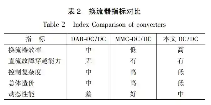 5换流器性能对比以1MW/2000V/750V额定参数为例,DAB-DC/DC、MMC-DC/DC与本文提出DC/DC换流器具体指标对比如表2所列。