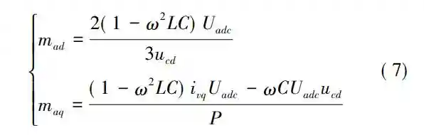 结合式(4)和(5),得到VSC调制度与公共耦合点处的电压以及传输功率的表达式为