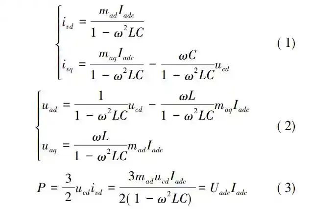 式中,mvd和mvq分别为VSC侧换流器调制度的dq轴分量;Uvdc和Ivdc分别为直流负荷侧的直流电压和直流电流。
